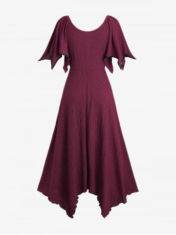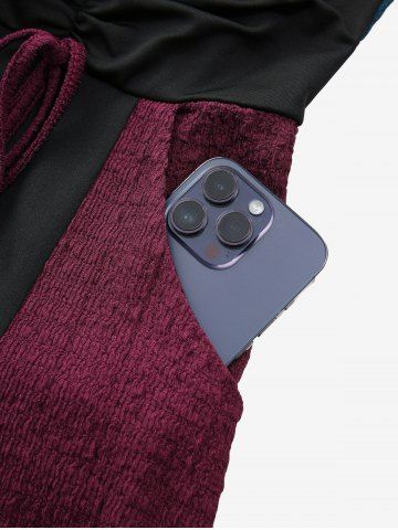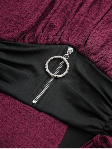 Plus Size Zipper O-ring Waist Cinched Pocket Ruched Textured Asymmetrical Dress - Deep Red - 5x | Us 30-32