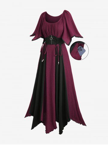 Alternative & Gothic Dress > Plus Size Zipper O-ring Waist Cinched Pocket Ruched Textured Asymmetrical Dress