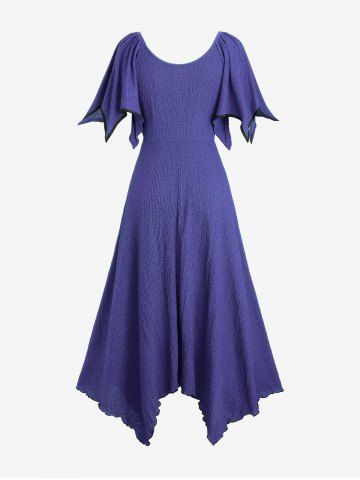 Plus Size Zipper O-ring Waist Cinched Pocket Ruched Textured Asymmetrical Dress - Concord - 1x | Us 14-16