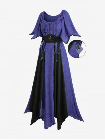 Alternative & Gothic Dress > Plus Size Zipper O-ring Waist Cinched Pocket Ruched Textured Asymmetrical Dress