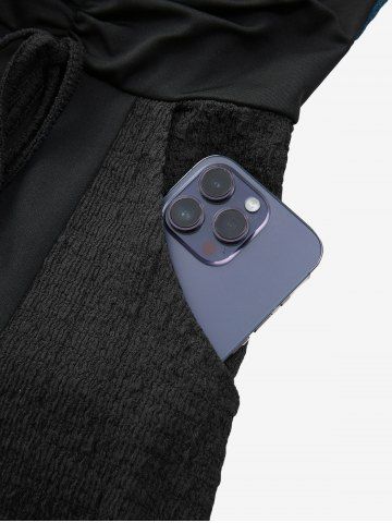 Plus Size Zipper O-ring Waist Cinched Pocket Ruched Textured Asymmetrical Dress - Black - 2x | Us 18-20