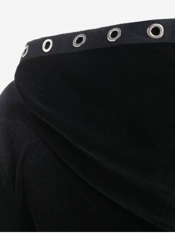 Gothic Lace-up Grommet Zipper Fly Velvet Hoodie - Black - 3x | Us 22-24