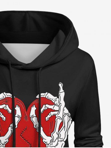 Gothic Skeleton Hand Broken Heart Print Pocket Drawstring Pullover Hoodie - Black - L
