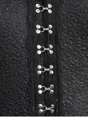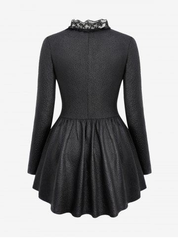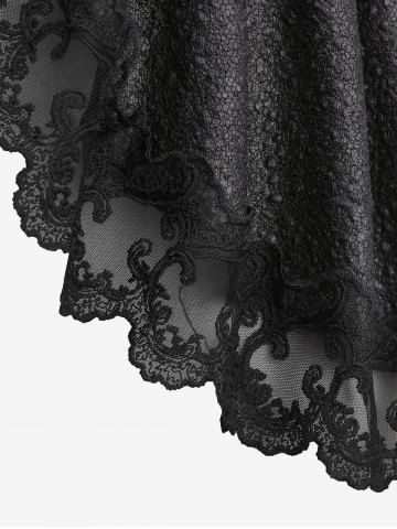 Gothic Crack Textured Floral Lace Trim Hook and Eye Ruffles Asymmetric High Low Long Sleeves Coat - Black - 3x | Us 22-24