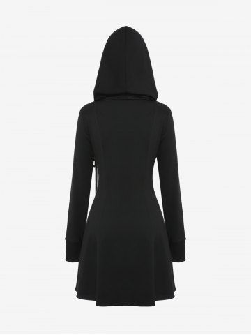 Gothic PU Panel Turn-down Collar Grommet Lace Up Braided Side Zip Hooded Coat - Black - M | Us 10