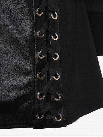 É*****e4PU Panel Turn-down Collar Lace Up Braided Grommet Side Zip Hooded Coat and Skull Grommets Lace Up Leggings Plus Size OutfitColor: BLACKVeste superbe bien taillée parfaite lacage à refaire pour un côté chic classe pantalon type legging taille grand souple agréable niveau textile