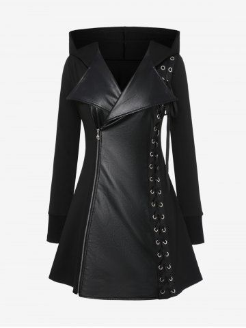 L*****e4Gothic PU Panel Turn-down Collar Grommet Lace Up Braided Side Zip Hooded CoatColor: BLACK Size: 1X | US 14-16coat is very good quality and all around just fantastic ....very warm and comfortable as well