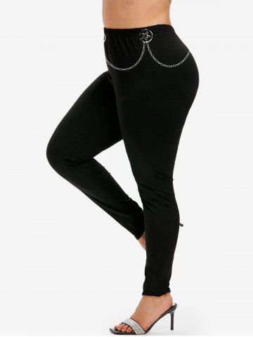 Gothic 3D Chain Print Skinny Leggings - Black - 1x | Us 14-16