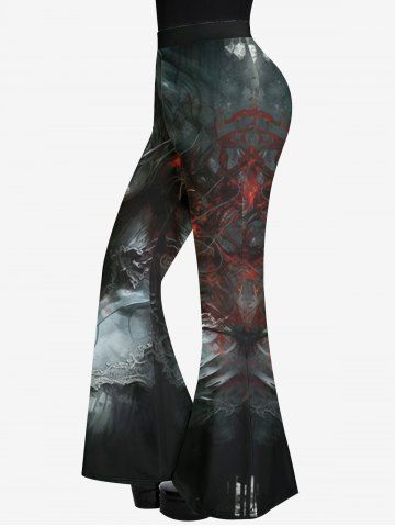Gothic Blood Girl Print Flare Pants - Black - 1x