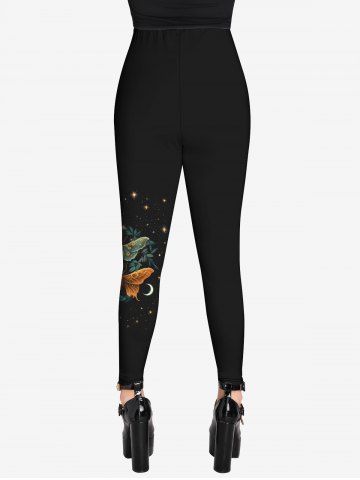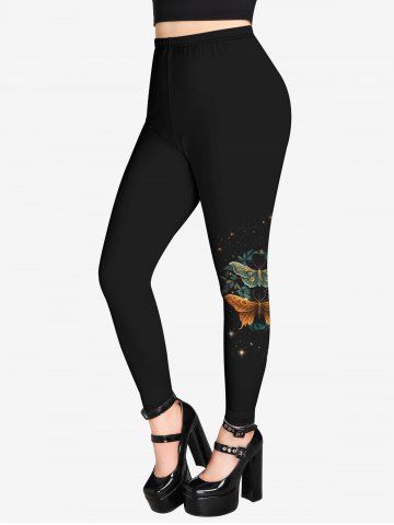 Gothic Butterfly Leaf Print Leggings - Black - M | Us 10