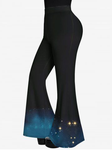Gothic Galaxy Glitter Print Flare Pants - Black - 2x