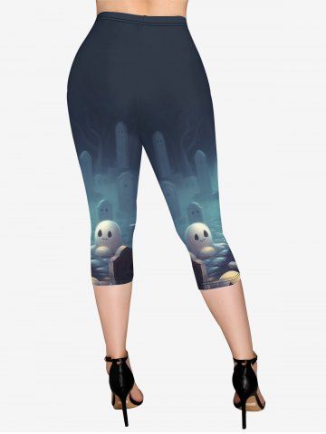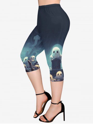 Gothic Ghost Cross Tombstone Print Pockets Capri Leggings - Black - S