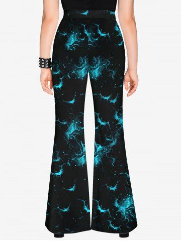 Gothic Glitter Bat Print Halloween Flare Pants - Black - 1x