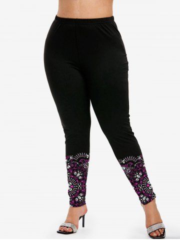 Gothic High Waist Skull Print Skinny Leggings - Black - 1x | Us 14-16