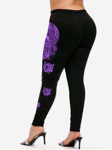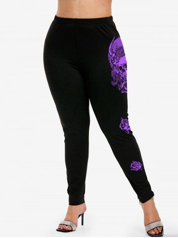 Gothic High Waist Skull Rose Print Leggings - Black - 1x | Us 14-16