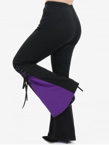 Gothic Lace Up Two Tone Godet Hem Pull On Flare Pants - Purple - L | Us 12
