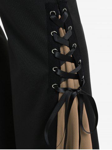Leggings & Pants > Gothic Lace Up Two Tone Godet Hem Pull On Flare Pants