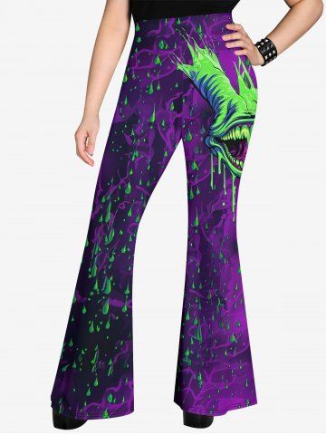 Gothic Monster Rainy Print Flare Pants - Purple - 1x