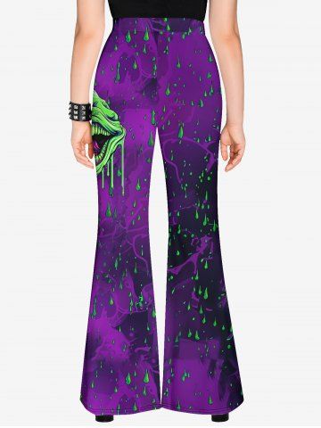 Gothic Monster Rainy Print Flare Pants - Purple - 4x