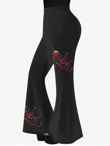 Leggings & Pants > Gothic Octopus Print Flare Pants