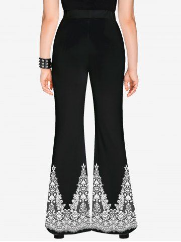 Gothic Paisley Figure Print Flare Pants - Black - 4x