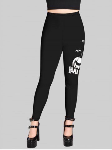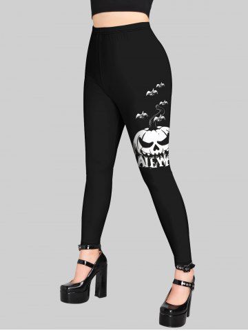 Gothic Pumpkin Bat Print Skinny Halloween Leggings - Black - 1x