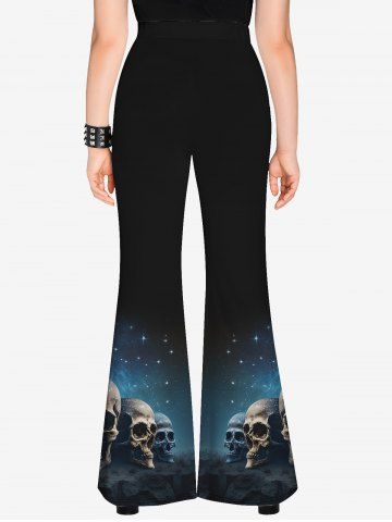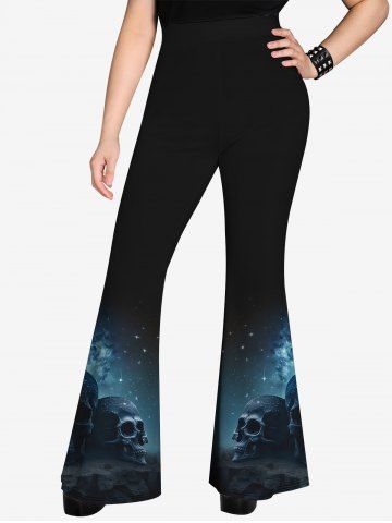 Gothic Skull Glitter Printed Flare Pants - Black - 1x | Us 14-16