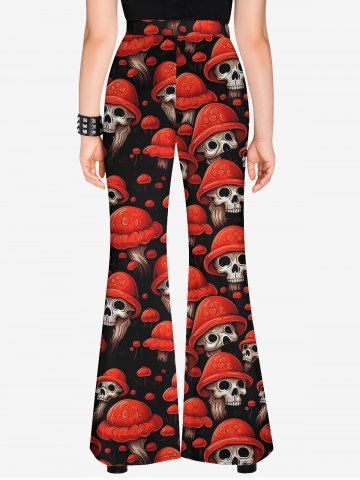 Gothic Skull Mushroom Hat Print Flare Pants - Red - 2x