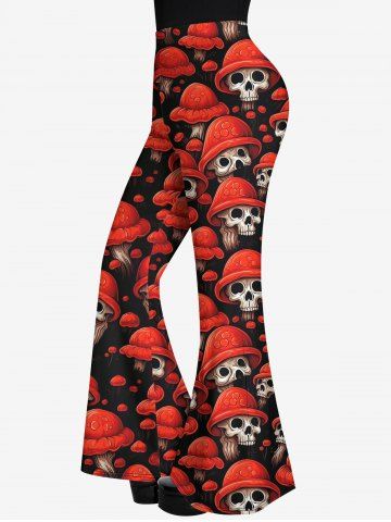Gothic Skull Mushroom Hat Print Flare Pants - Red - 3x