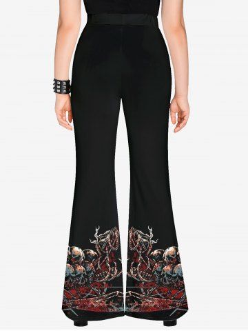 Gothic Skulls Bloody Branch Print Flare Pants - Black - 5x