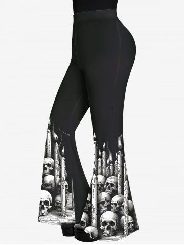 A*****a5Gothic Skulls Candles Print Flare PantsColor: BLACK Size: 6XBeautiful fabric and very soft and comfortable. Fits perfectly and I love it.