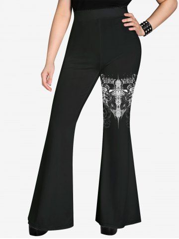 k*****n5Gothic Skulls Cross Print Flare PantsColor: BLACK Size: SAmazing and gorgeous to wear, very flexible, good machine washable lovely