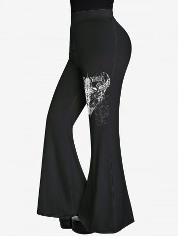 k*****n5Gothic Skulls Cross Print Flare PantsColor: BLACK Size: SAmazing and gorgeous to wear, very flexible, good machine washable lovely