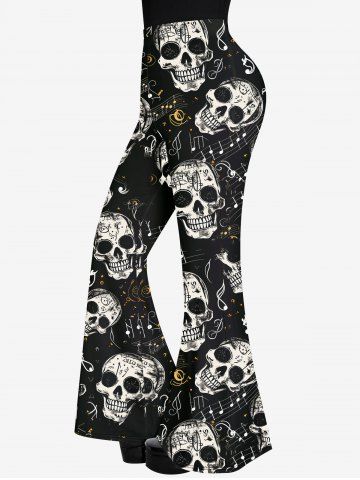 m*****15Gothic Skulls Music Symbol Print Halloween Flare PantsColor: BLACK Size: 4Xgood