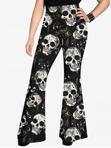 m*****15Gothic Skulls Music Symbol Print Halloween Flare PantsColor: BLACK Size: 4Xgood