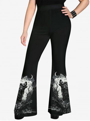 l*****s4Gothic Wolf Moon Tree Painting Splatter Print Flare PantsColor: BLACK Size: 6X6x and fit like an American 4 x but otherwise are very comfy. I got the top too. also 6x that fits like an American 4x. love the outfit. Shop here often and learned how sizes work with different sets. it'll fit perfect if your normally a 4xplus size. won't be loose but won't be tight enough to worry bout tears. material is stretchy. very nice looking though, and no they dont fade in color. least mine haven't.