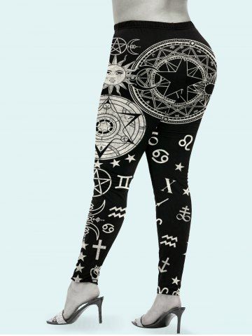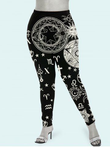 Plus Size Astrology Sun Moon Print Leggings - Black - 2x | Us 18-20