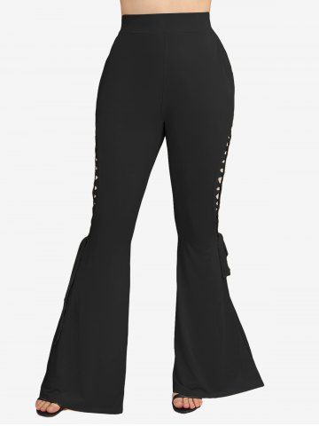 Plus Size Rose Flower Lace Braided Hollow Out Pockets Flare Pants - Black - 4x | Us 26-28