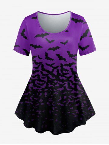 Bat Print Short Sleeve T-shirt And Bat Print Skinny Leggings Gothic Outfit - Purple