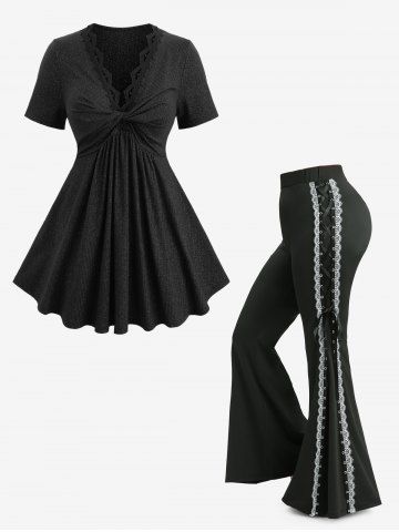 V*****a5Plus Size Lace Up Lace-trim Grommets Side Two Tone Flare PantsColor: BLACK Size: L | US 12I love all my clothes that I bought at rosegal. Great purchase 👌.