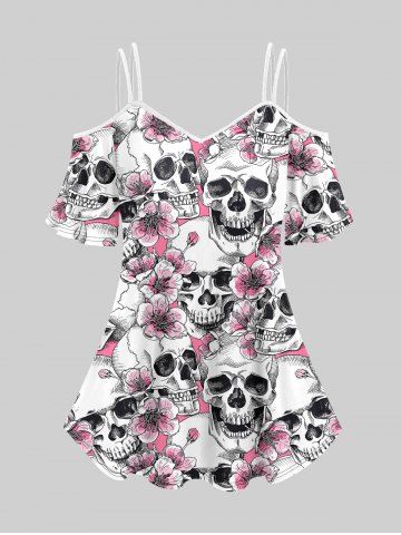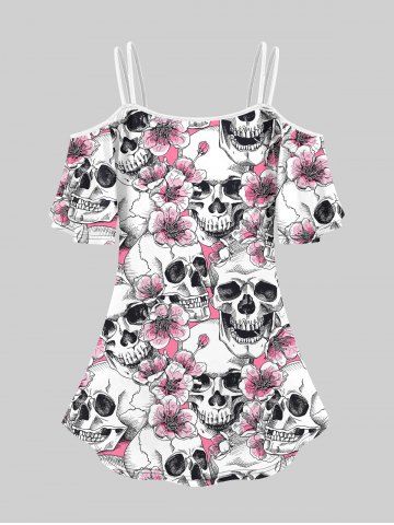 a*****e5Gothic 3D Skull Floral Printed Cold Shoulder TeeColor: WHITE Size: 2X | US 18-20love it! I wore this the other day it was very comfortable and nice summer material.