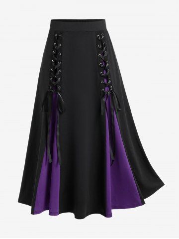 C*****l5Halloween Vampire Costume Gothic Lace Up Two Tone Godet Hem Midi A Line Victorian Walking SkirtColor: PURPLE Size: S | US 8True to size, fits well, the material is nice and good quality, not see through. Looks exactly like the picture. The string in the front is just a thin black ribbon only for decorative purposes, not to be used to tie the skirt tighter.