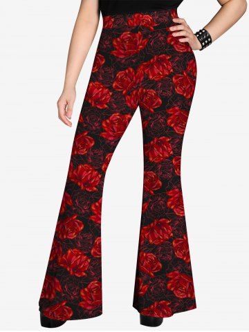 l*****s5Gothic Flower Print Flare PantsColor: RED Size: 4X | US 26-28fit great and pair perfectly with the black and rose top and with the black and rose hoodie I got here. super happy with these.