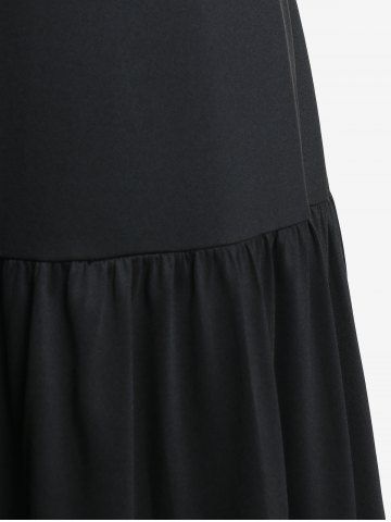Gothic O Ring Chains Handkerchief Tank Top and Skull Flocking Appliques Flare Pants Plus Size Outfit - Black