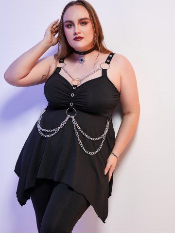 Plus Size Gothic O Ring Chains Handkerchief Tank Top