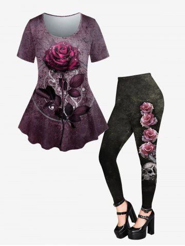 c*****44Gothic Rose Skull Print Skinny Leggings and Rose Skull Print Skinny Leggings OutfitColor: DEEP REDI love the shirt in this pair. The leggings are a little thin but great for warmer weather. I am a petite cut, so I will have to alter the waistband, but I love the print and will wear them often
