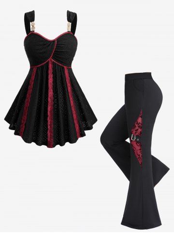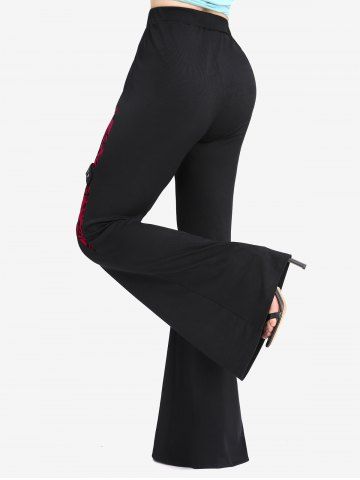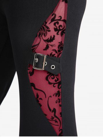 M*****e5Plus Size Floral Mesh Flockinig Buckle Grommet Ribbed Pockets Flare PantsColor: BLACK Size: 1X | US 14-16tissus très agréable a porterntaille fidèle à la description ntaille haute