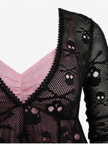 d*****75Plus Size Ruched Marled Cami Top And Skulls Mesh Lace Trim Chiffon Patchwork TopColor: BLACK Size: 1X | US 14-16Vraiment superbe, tissus agréable de porter, belle qualité, original.