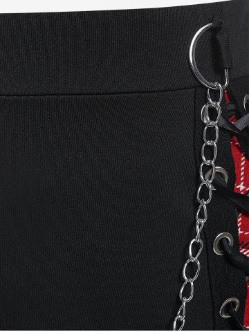 M*****e5Plus Size Gothic Plaid Buckles High Waisted A Line Mini SkirtColor: BLACK Size: 4X | US 26-28Love this skirt, it’s a little longer than I expected it to be but it’s just because I forget that I’m very short lol so for short girls out there, it’ll be longer than pictured in the listing. Still goes a few inches above my knee tho and still what I was looking for
