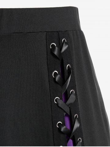 v*****r5Plus Size Skulls Mesh Panel Bell Sleeves Twist Lace Up Asymmetrical 2 In 1 TopColor: BLACK Size: 2X | US 18-20I love the design and colors to the blouse. I was not expecting the skulls which fits my witchy personality. 🖤♥️🖤♥️🖤🖤☺️